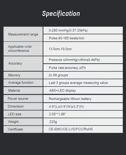 Automatic Electric Wrist Blood Pressure Monitor, Large Touch Screen, LED Display, 1 mmHg Accuracy, Memory Function, Plastic Material, Home Use